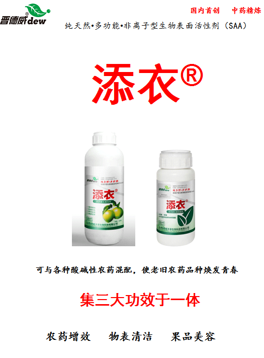 1、農(nóng)藥增效 ?與農(nóng)藥混配,提高藥效和利用率,延緩農(nóng)藥抗藥性,使老舊農(nóng)藥品種換發(fā)青春。解決多種農(nóng)藥混配使用困難,調(diào)節(jié)作用不均衡,長勢(shì)和產(chǎn)量不協(xié)調(diào),使用范圍和方法受限制,易產(chǎn)生抗藥性,影響產(chǎn)量和品質(zhì)等系統(tǒng)性問題,尤其解決了波爾多液、石硫合劑等堿性農(nóng)藥礦物質(zhì)成分流動(dòng)性差、吸收率低、易產(chǎn)生藥害等技術(shù)難題,是農(nóng)藥增效減量的有效手段。